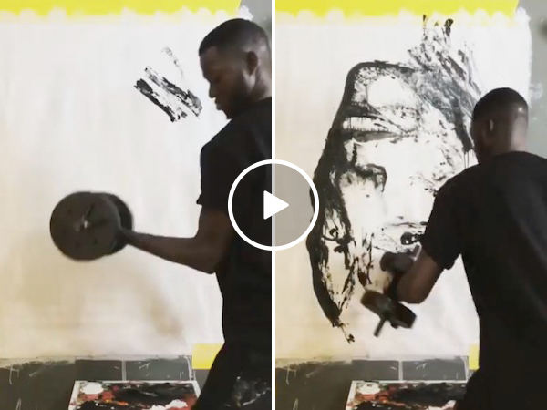 Using a barbell to paint a portrait of The Rock seems appropriate (Video)