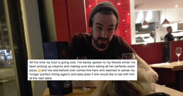 Hero waiter takes a toddler on a date, so her mom can enjoy her meal (9 Photos)