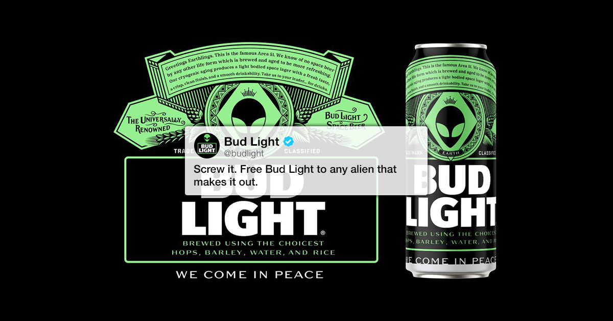 Bud Light’s got free beer for any alien that makes it out of Area 51 (14 Photos) by: Stephen Jul 20, 2019 07/20/19 0 Liked! 2 Disliked 0 lifestyle