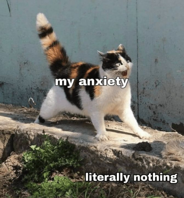 › Funny › Meme , Too True Waddup, Anxiety. It’s Me, Your Boy. Luka 4 hours ago Add Favorite 27 8 0 I Don’t Have Two Wolves In Me. I Have This Cat.1 I think most of us have some form of anxiety… I just happen to have a little extra! These memes were a little bit too relatable for my liking, but I still kind of chuckled at a few. So, here’s to hoping you do too.