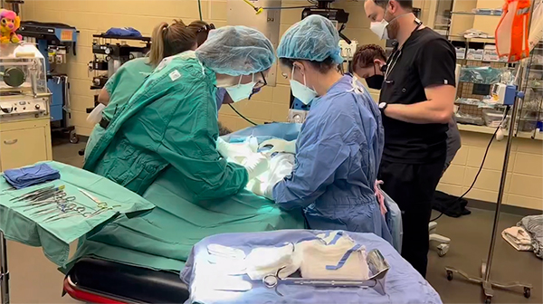 After her labor had stopped progressing, Drs. Whisler and Chibry of College Hill OB-GYN, along with the zoo veterinary team, were forced to step in and perform a C-section.