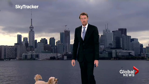 This just in: adorable dog wanders onto set during local weather forecast, brightens day for millions. More to follow.