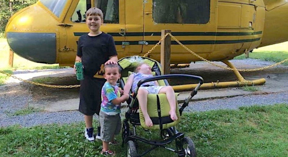 Everything you need to know about Abby is in this pic. Well, not everything. That’s an exaggeration, I do that. Abby’s got an important story, and she does need your help, but I have to talk about her brothers for just a minute. Because most of the life lessons your mom tried to teach you are right here in this photo. These boys, posing with their sweet sister in front of this yellow helicopter, they’re doing family right.