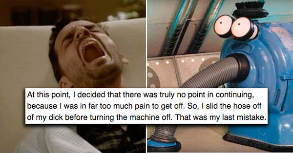 Do you ever look at a random inanimate object and think, I wonder what that would feel like on my dick? Most red-blooded males have at some point in their lives, whether they admit it or not. But this guy found out the hard way that a vacuum cleaner hose is not the way to go.