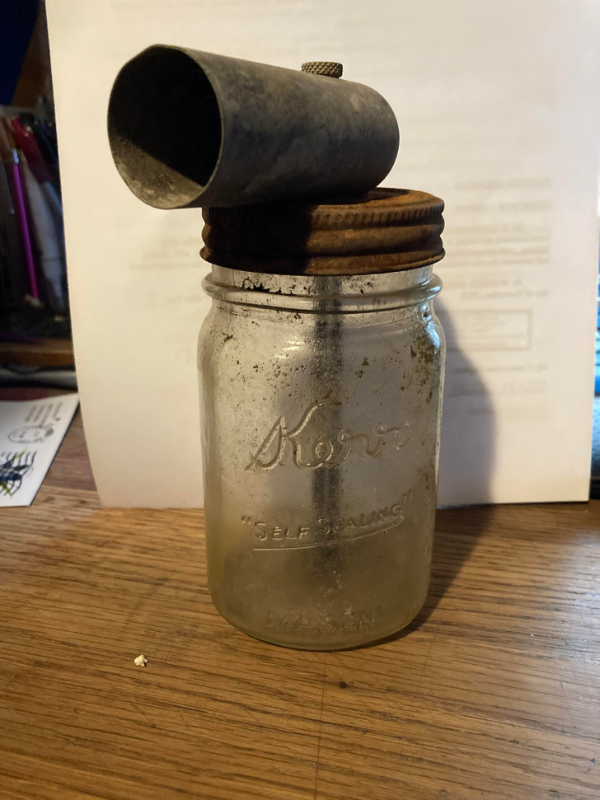 I found this metal jar lid with a pipe screwed on a pint jar. What is it?